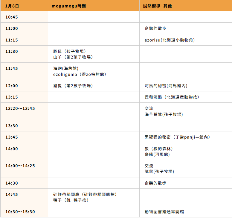 但其實旭山動物園除了企鵝散步以外也安排了很多活動,每天早上10點在旭山動物園的官網會公布當天的動物餵食時間表,或是在入口處會有公布當天的活動時刻表。