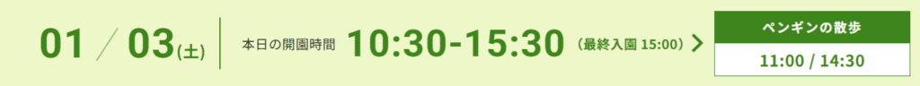 開園時間可能會因天氣或其他因素而有所調整,建議在造訪前可以到旭山動物園的官網確認開園資訊,首頁都會像這樣很清楚的標示上當天營業時間和企鵝散步(冬季限定)的時間。