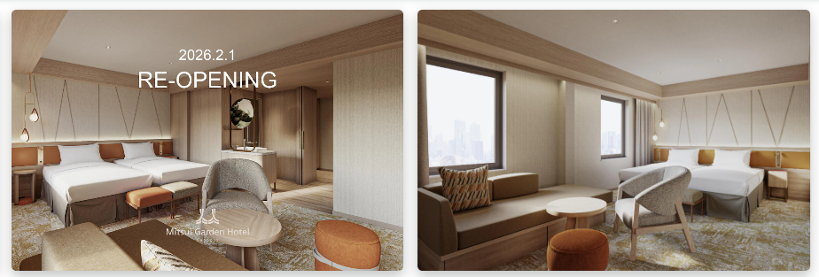 位於六花亭本店對面的三井花園飯店札幌,重新整修預計於2026年2月1日重新開幕,這次整修針對家庭與團體客的需求,大幅增加可以入住3~4人的房型,從原本的20間增加到140間,家人一起出遊不怕要分房睡了。