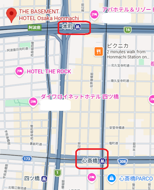 The Basement Hotel Osaka Honmachi位在「本町」站步行2分鐘距離,對於觀光客來說可能不太熟悉這站,但其實這站附近也有些商務旅館,搭車離大阪梅田或難波都只需要幾站的距離。